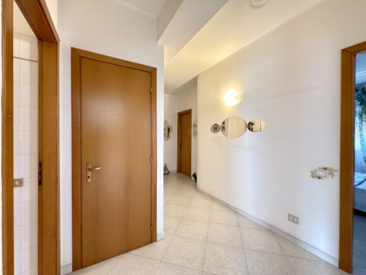 Posto al piano terzo in contesto condominiale con ascensore, l'appartamento ha una superficie di 195 mq. totali ed è composto da un doppio ingresso su cucina/soggiorno e su salone, entrambe stanze balconate, disimpegno, doppio servizio con doccia, ripostiglio, 4 camere da letto, e bagno con vasca.