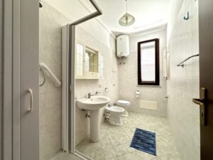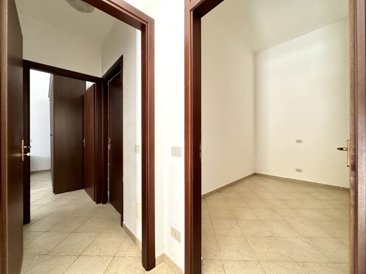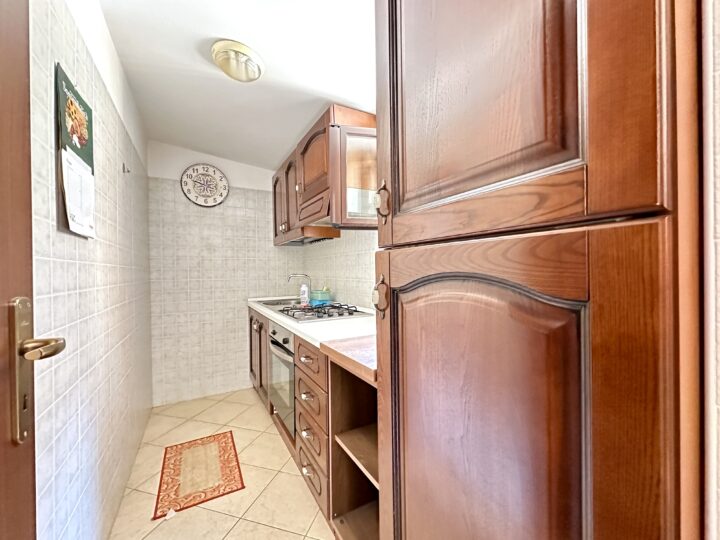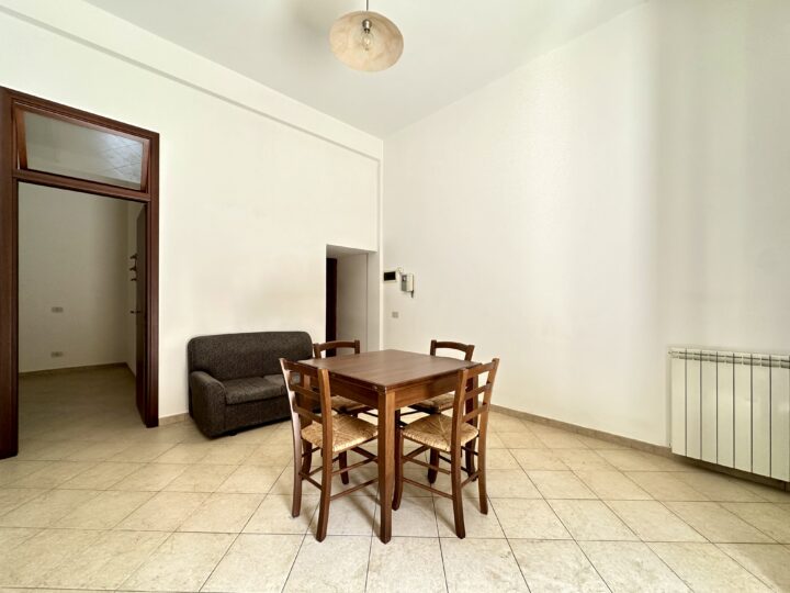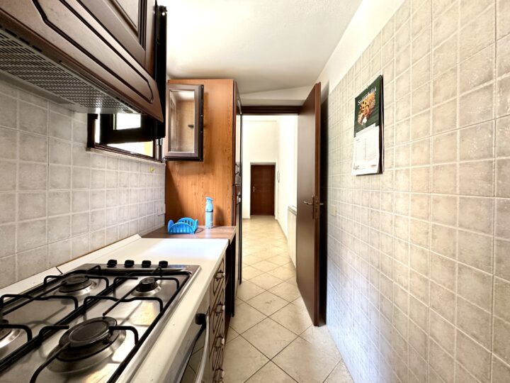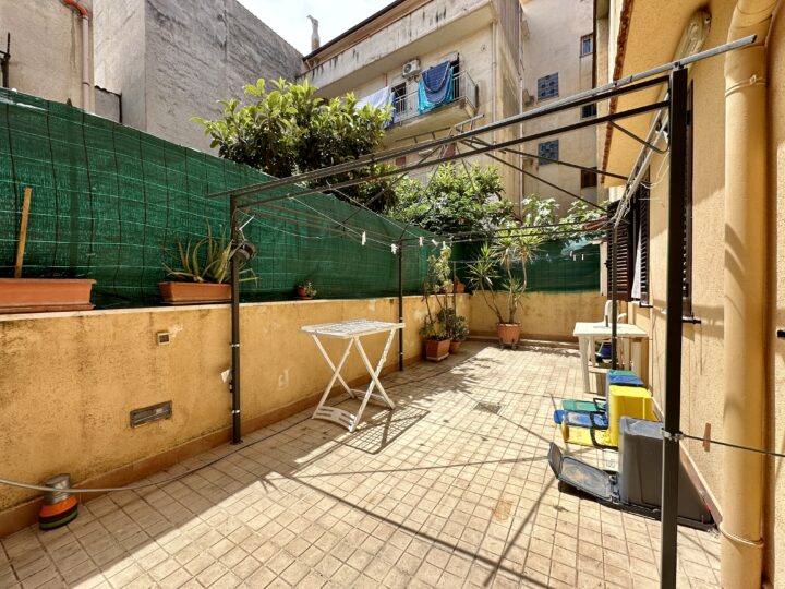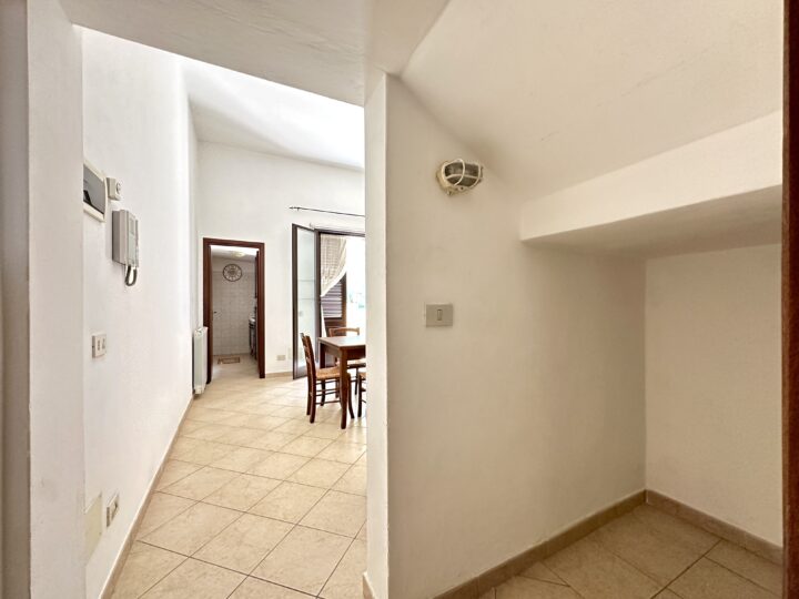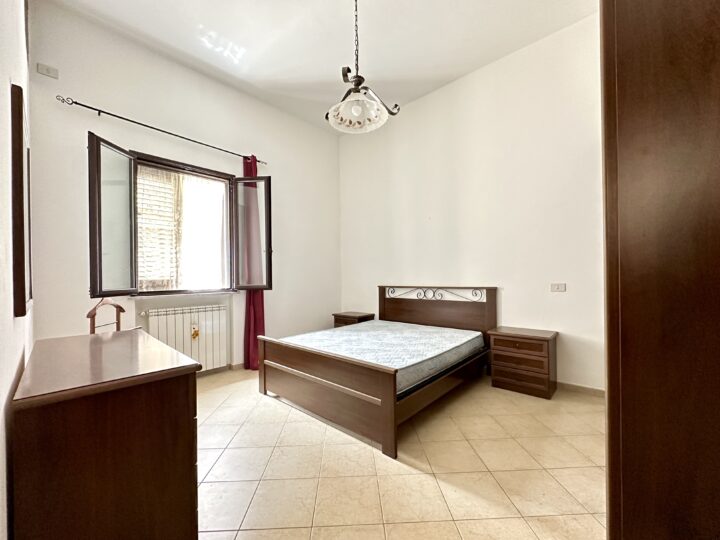 L'appartamento di mq. 80 è posto al piano terra con accesso da vano scala condiviso ed è composto da soggiorno con affaccio sul retro dell'abitazione su graziosa veranda esterna, cucina, bagno, camera da letto, cameretta.