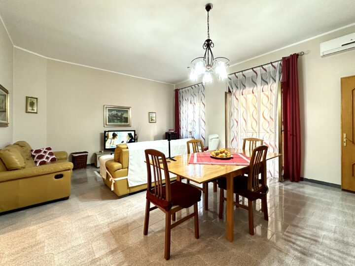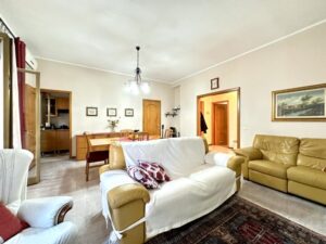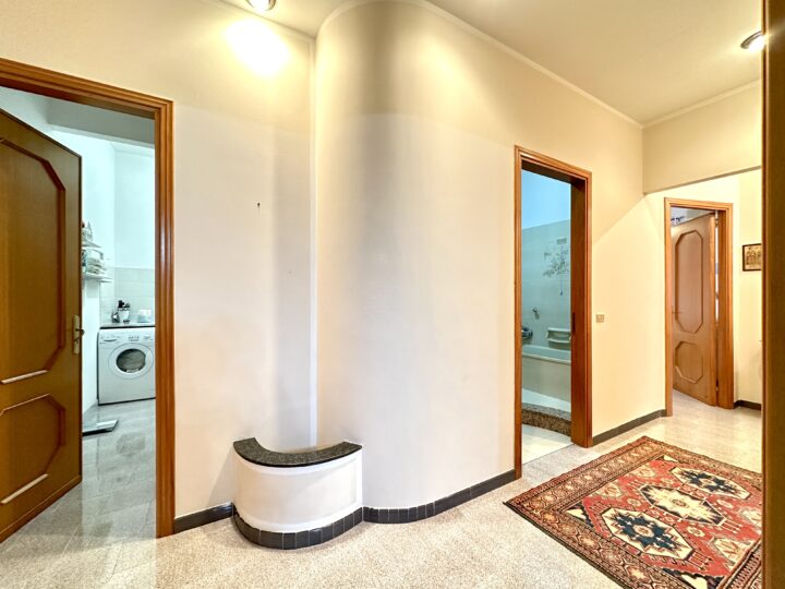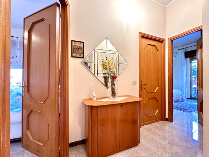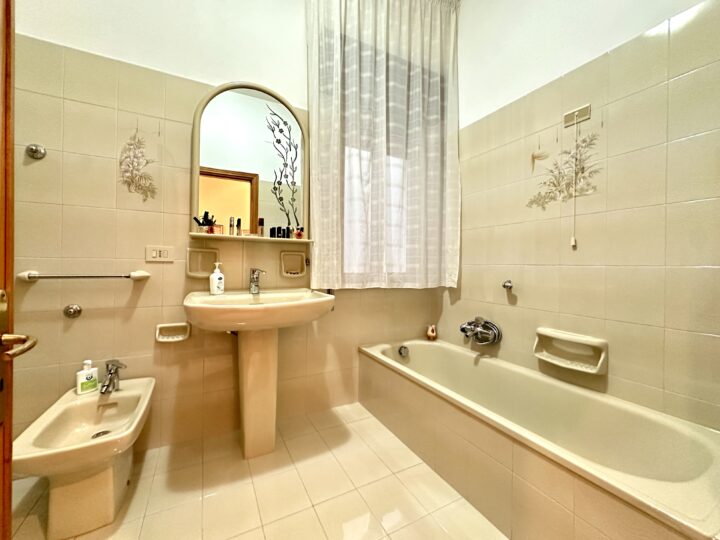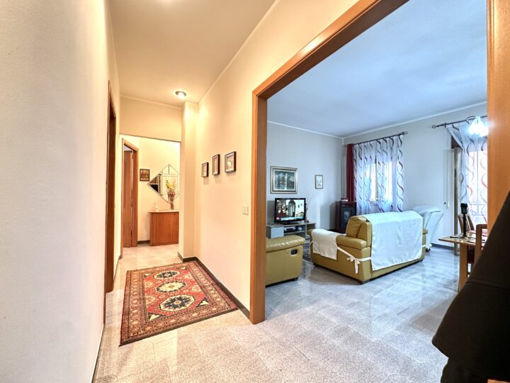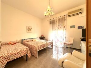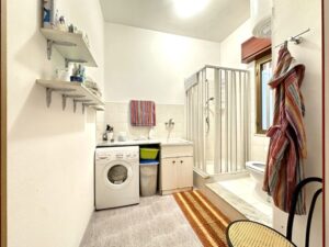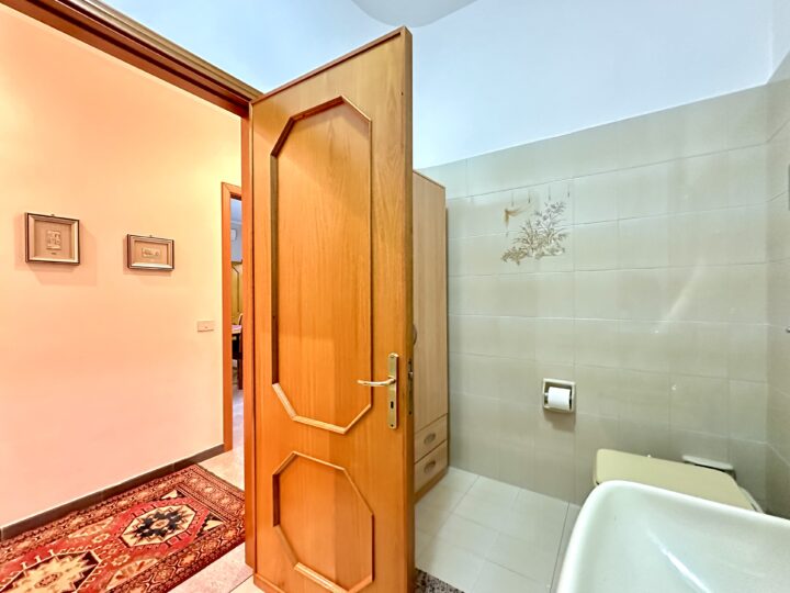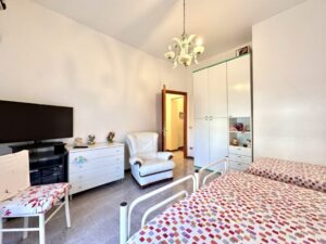 Composto da ingresso su disimpegno, soggiorno unico ambiente con affaccio su balcone, cucinino e ripostiglio, doppio servizio con doccia/lavanderia, bagno con vasca, camera da letto matrimoniale e 2 camerette.