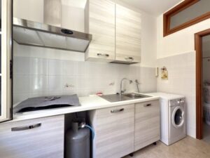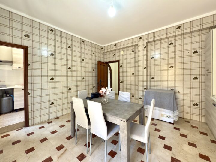 Posto al piano primo senza ascensore in contesto condominiale curato di sole 3 unità immobiliari, l'appartamento di mq, 154 è composto da ingresso su ampio disimpegno, cucina abitabile con a servizio un comodo cucinino e doppio servizio/lavanderia.