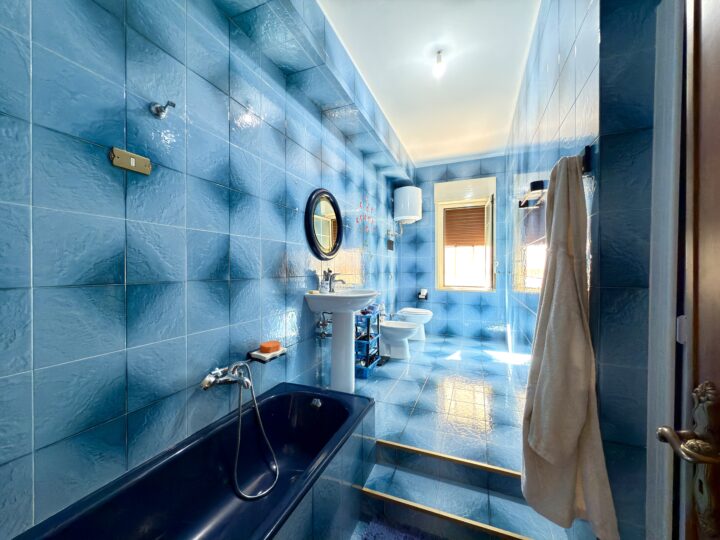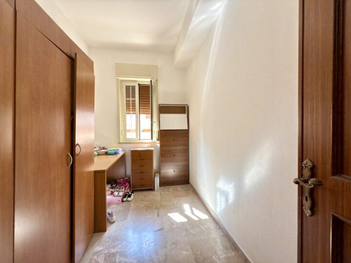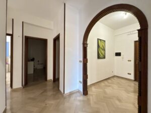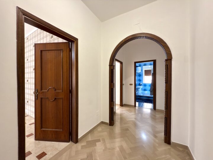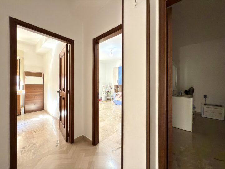 Proseguendo per il disimpegno troviamo un ampio salone, ripostiglio, 1 cameretta con affaccio balcone, ampio bagno con vasca e doccia e 2 camere da letto matrimoniali di cui una con affaccio balcone ed una su pozzo luce interno calpestabile.