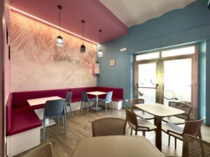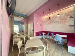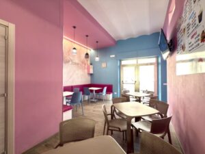 L' immobile ha una superficie di 80 mq. ed è composto da un doppio ingresso di cui, uno su zona somministrazione con bancone espositivo/lavoro ed uno su zona ristoro con posti a sedere e servizio igienico al pubblico.