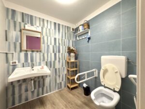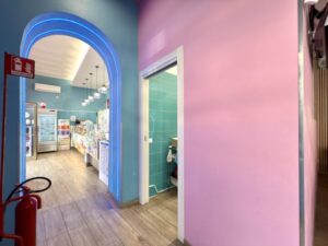 Dispone di un retrobottega con piccolo laboratorio e servizio igienico per il personale.