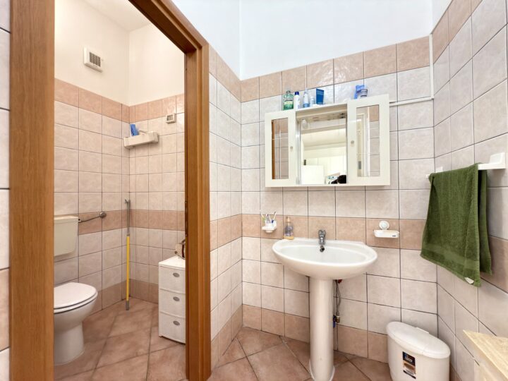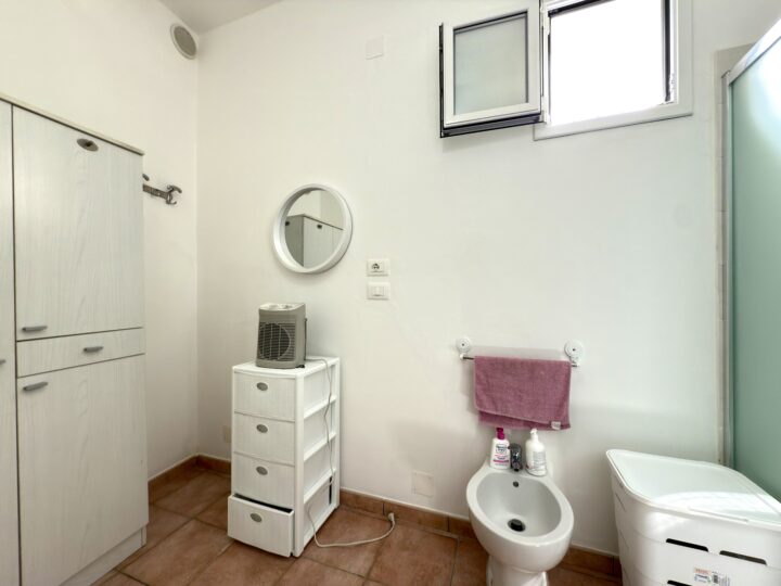 Il piano terra è stato ristrutturato di recente. In passato era un locale artigianale e oggi è un bilocale con due servizi. Anche se risulta in categoria C/3, è pronto all’uso. È adatto come abitazione, studio o piccolo laboratorio.