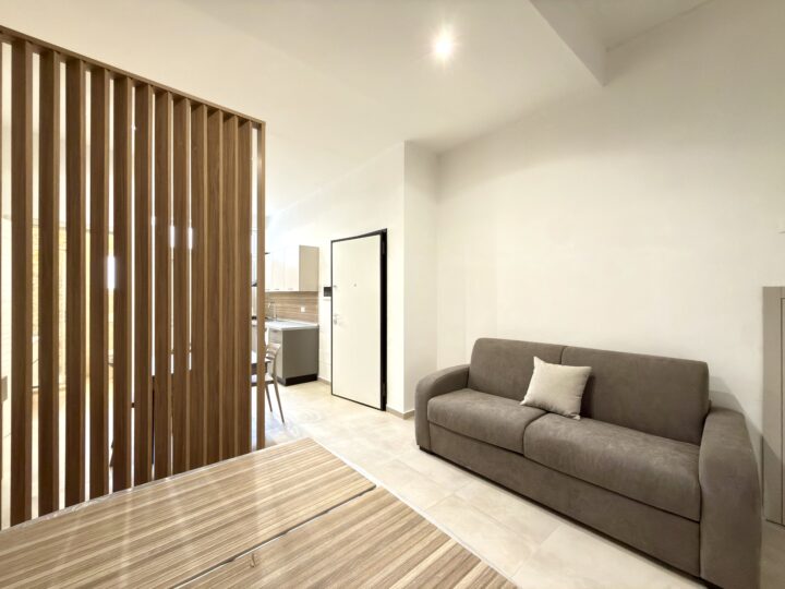 Monolocali composti da unico ambiente cucina/soggiorno, zona notte a vista e comodo bagno con doccia.