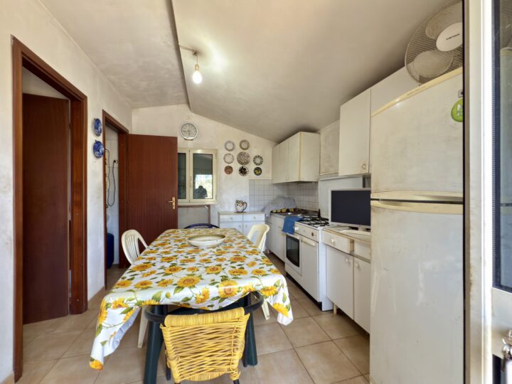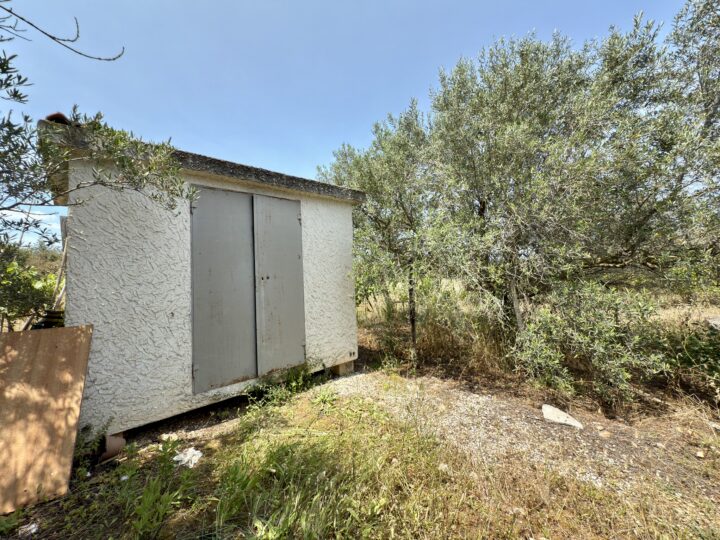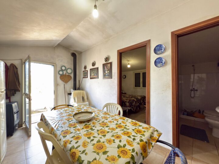 All’interno del terreno è presente una casetta prefabbricata di circa 30 m². La struttura è composta da un piccolo soggiorno con cucina, un bagno e una camera da letto. È un punto d’appoggio utile per trascorrere la giornata sul posto, riposarsi o riporre attrezzature leggere.