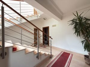 Il palazzo gode di un doppio ingresso su scala condominiale, da Via Benevento al piano rialzato e da Via Cagliari al piano terra.
