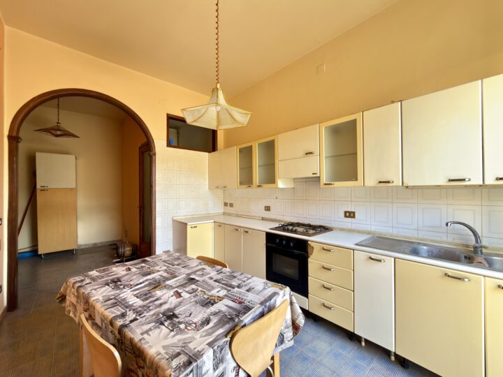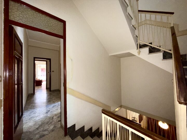 Appartamento posto al primo piano in contesto condominiale privato formato da 4 abitazioni, 2 per ogni piano, con una superficie di mq. 179 e composto da ingresso su disimpegno, 2 camerette, ampio salone, ripostiglio, camera matrimoniale, bagno con vasca, doppio servizio/lavanderia e cucina abitabile.