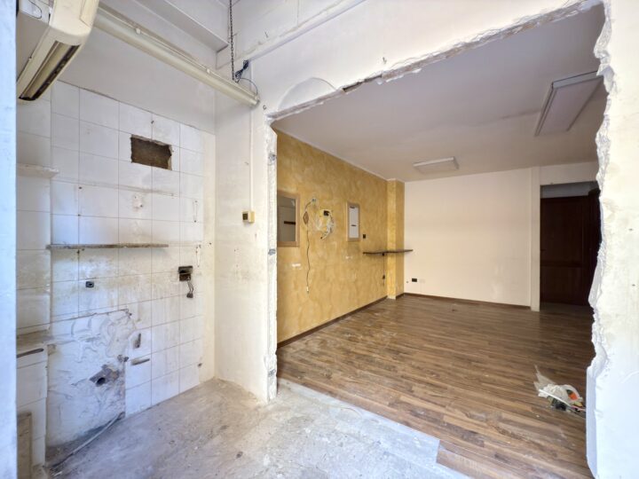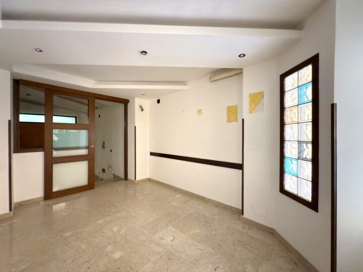 L'appartamento di 89 mq. è posto al piano terra ed è dotato di ingresso indipendente dalle unità immobiliari soprastanti, precedentemente adibito a studio medico ha una disposizione interna così suddivisa: ingresso su stanza adibita a zona attesa, saletta reception con w.c. per la clientela, 2 sale e w.c. per il personale. Inoltre l'immobile dispone di un vano di mq. 24 comunicante adibito a box auto con accesso dall'esterno da poter modificare per renderlo carrabile.