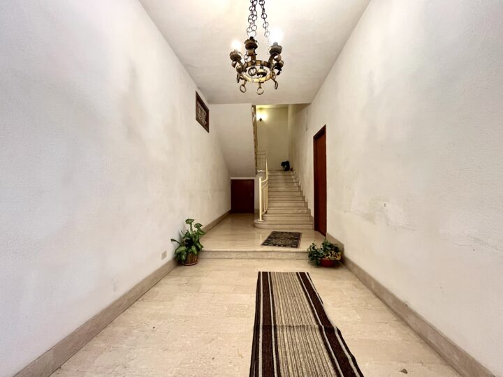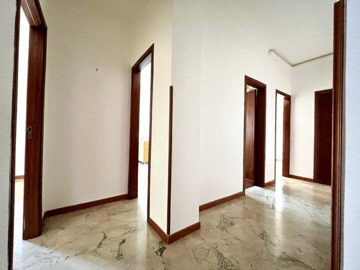 Composto da ingresso su ampia zona disimpegno, salone con affaccio balcone, cucina semi abitabile con affaccio su veranda coperta, un bagno con vasca e un doppio servizio/lavanderia, ripostiglio, camera da letto matrimoniale e due camerette.