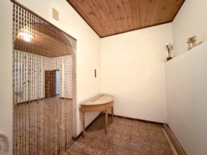 Composta al piano terra da doppio accesso, uno direttamente al piano con cucina/soggiorno, bagno con doccia ed un vano interno con ripostiglio; il secondo ingresso conduce all'ampio vano scala indipendente che porta ai piani superiori.