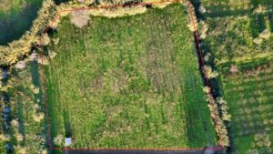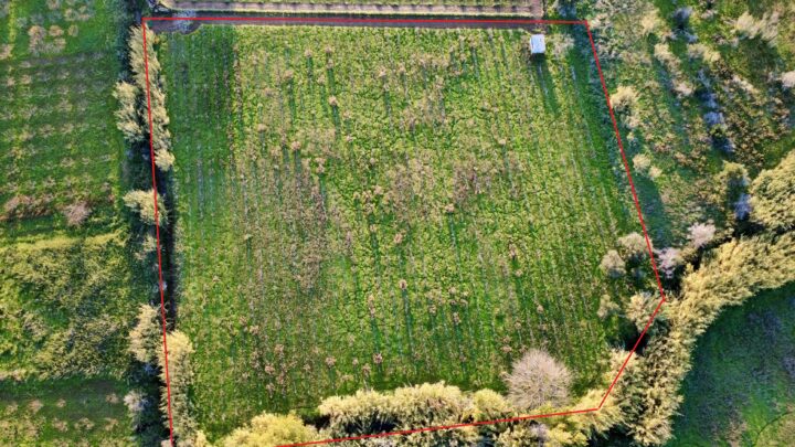 Il terreno con una superficie totale di 8.140 mq. ha una superficie pianeggiante ed una forma pressoché quadrata, i confini sono delimitati ma recintati soltanto su due lati.